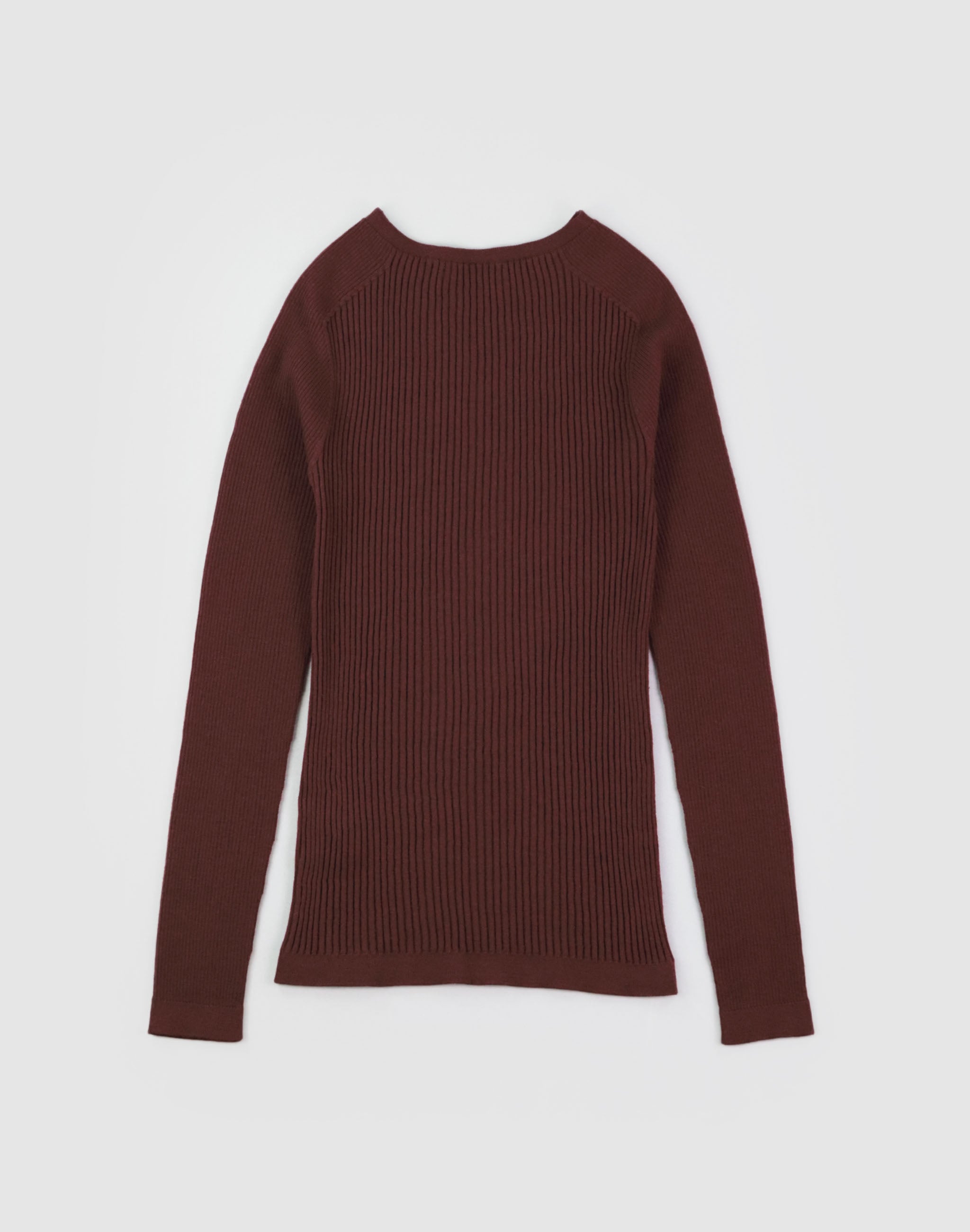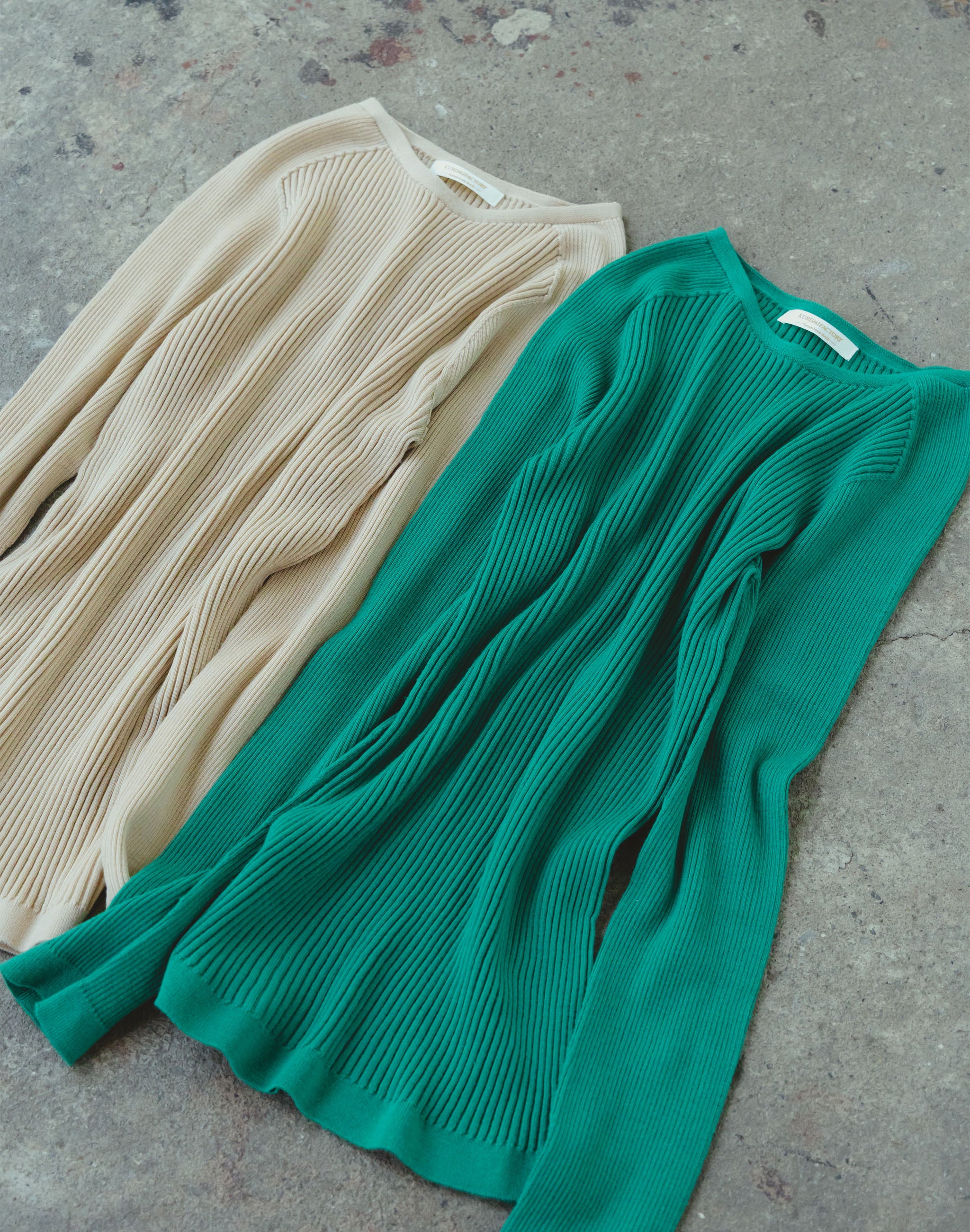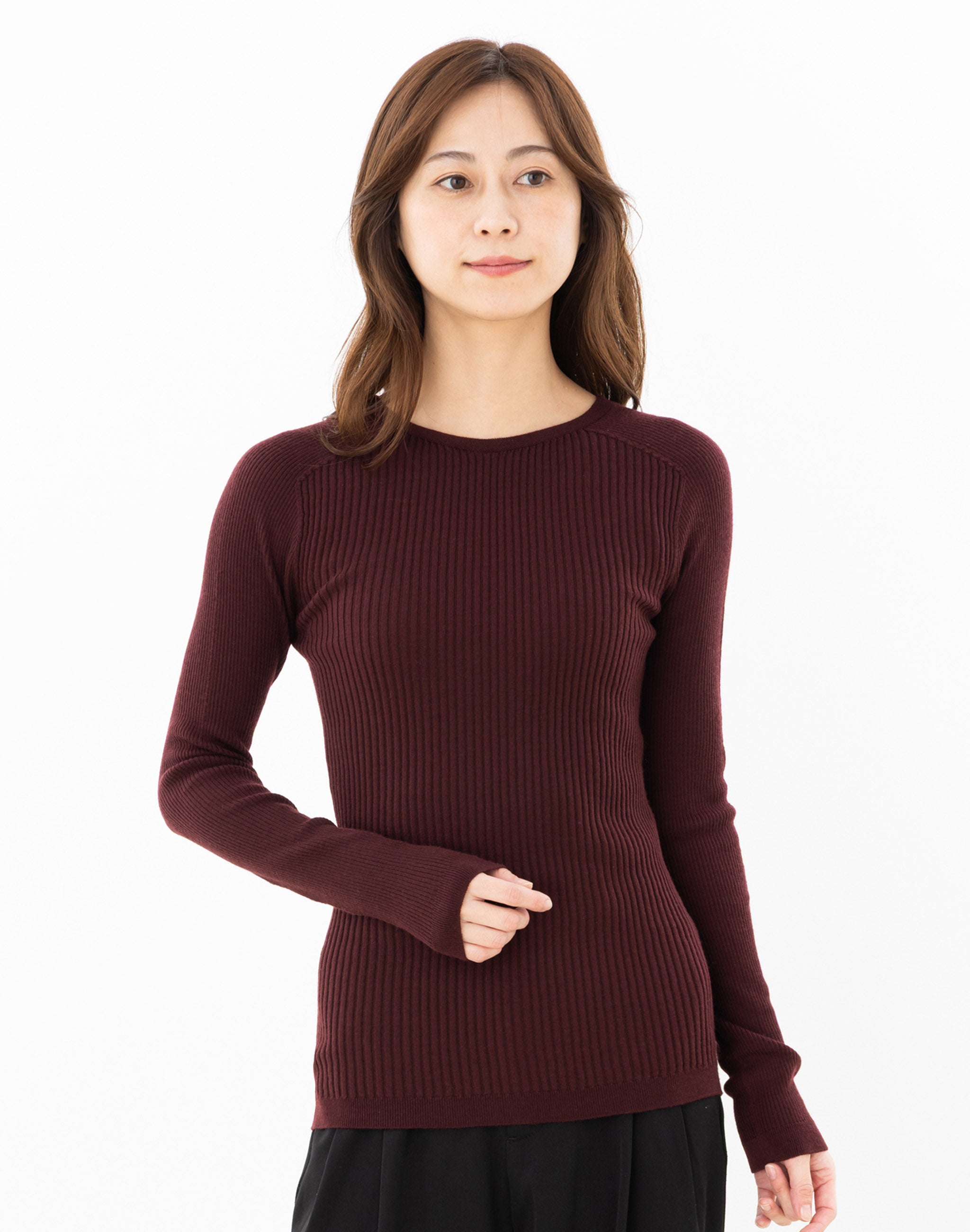 17.5マイクロンの上質なウール100%の糸を採用。程よいフィット感と、ホールガーメントの特長であるもたつかない特殊な編み方で、綺麗なシルエットが実現します。すっきりとした着心地の、着回し力抜群のアイテムです。
