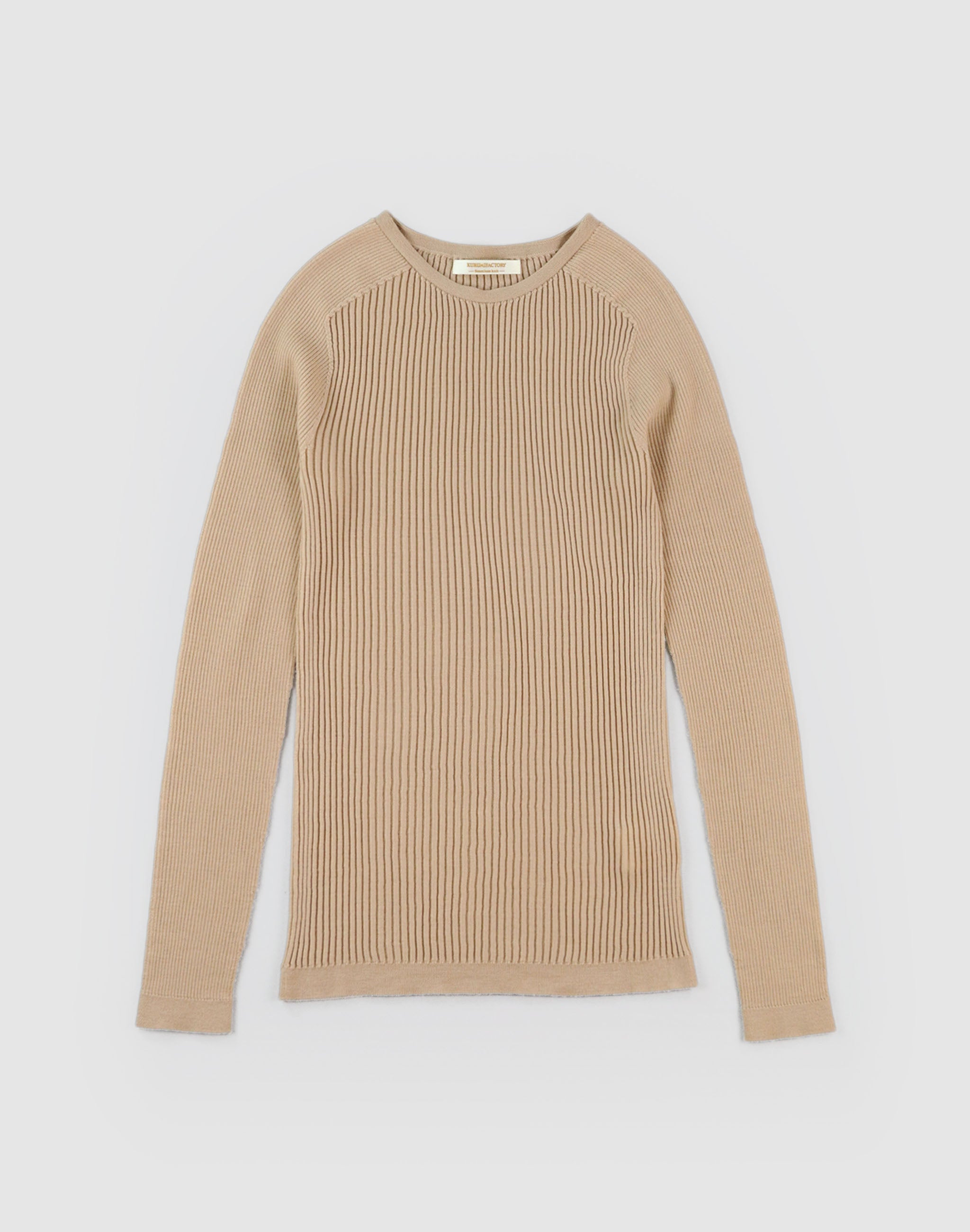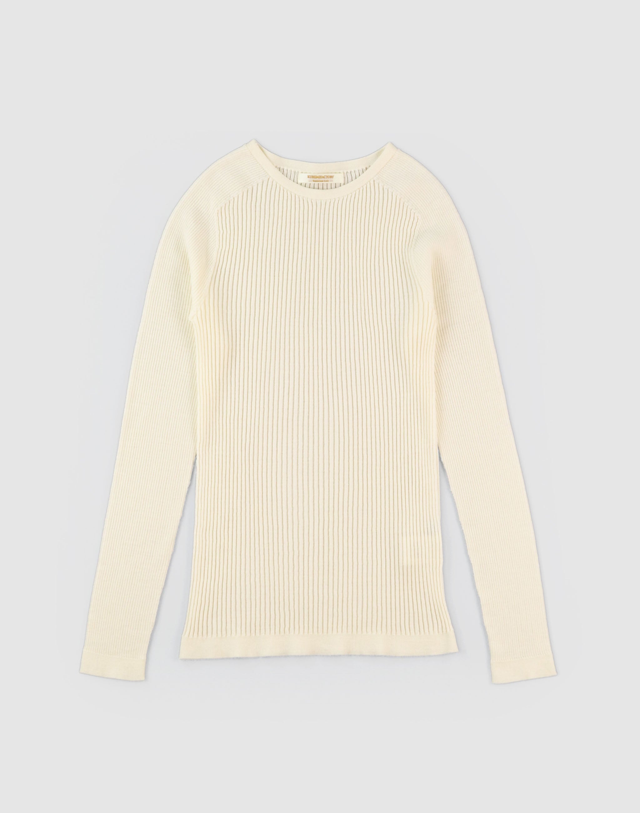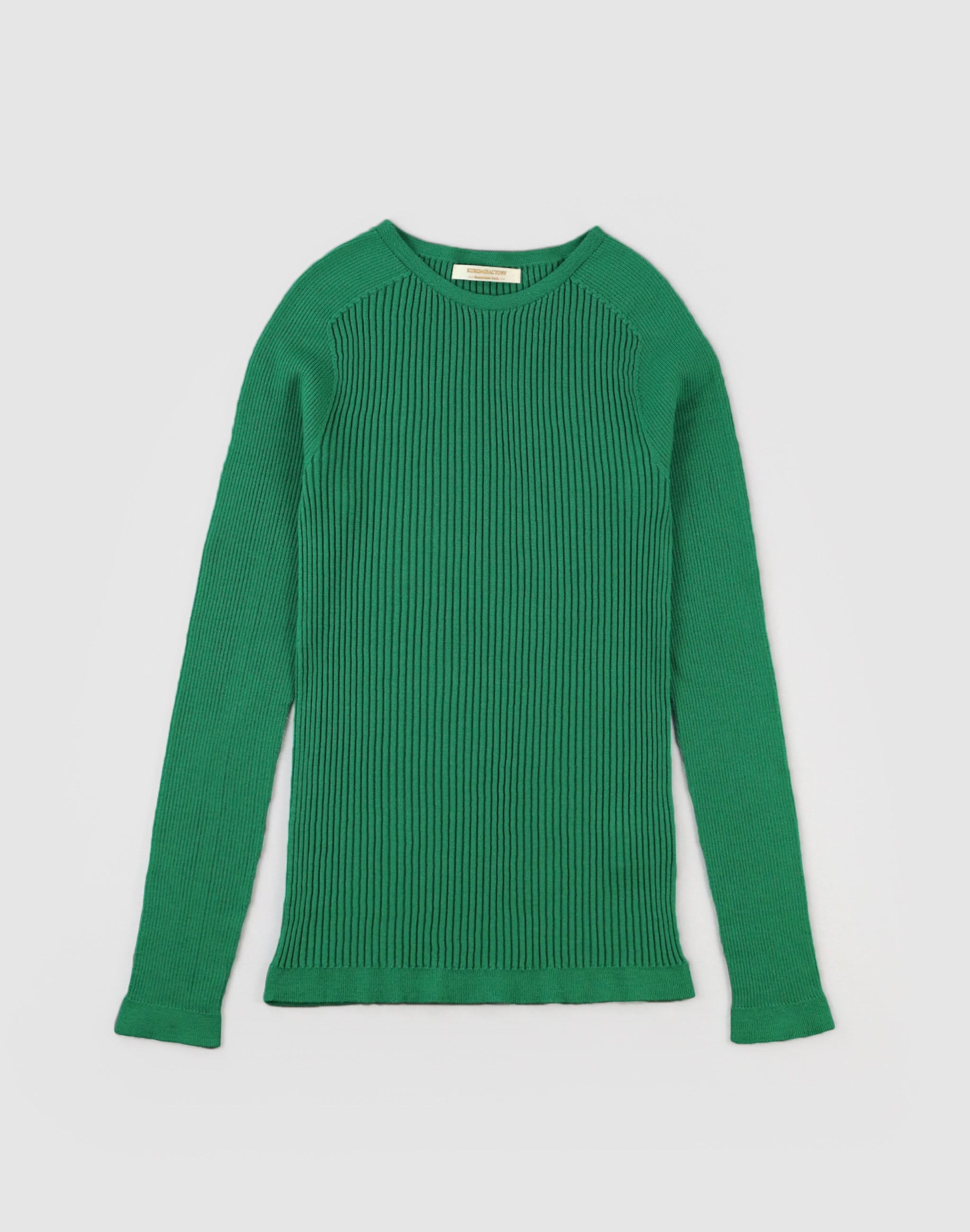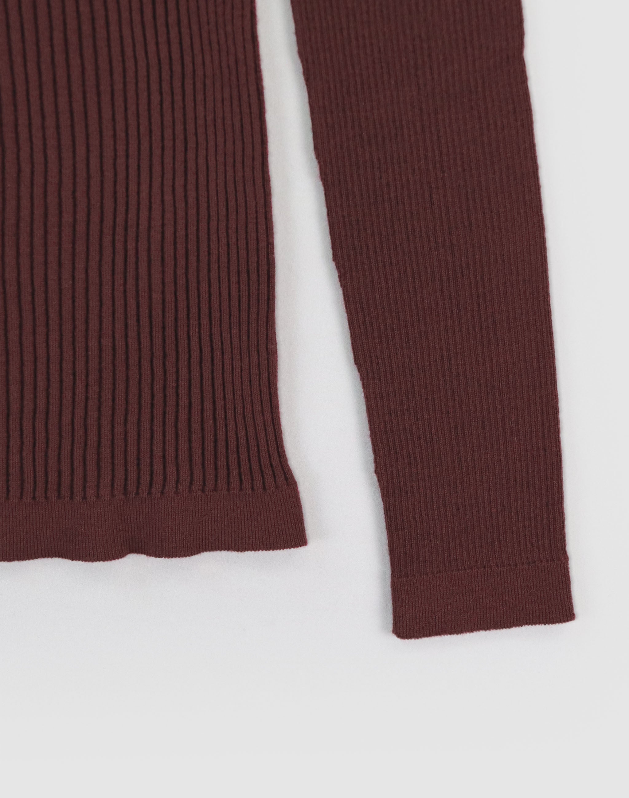 17.5マイクロンの上質なウール100%の糸を採用。程よいフィット感と、ホールガーメントの特長であるもたつかない特殊な編み方で、綺麗なシルエットが実現します。すっきりとした着心地の、着回し力抜群のアイテムです。