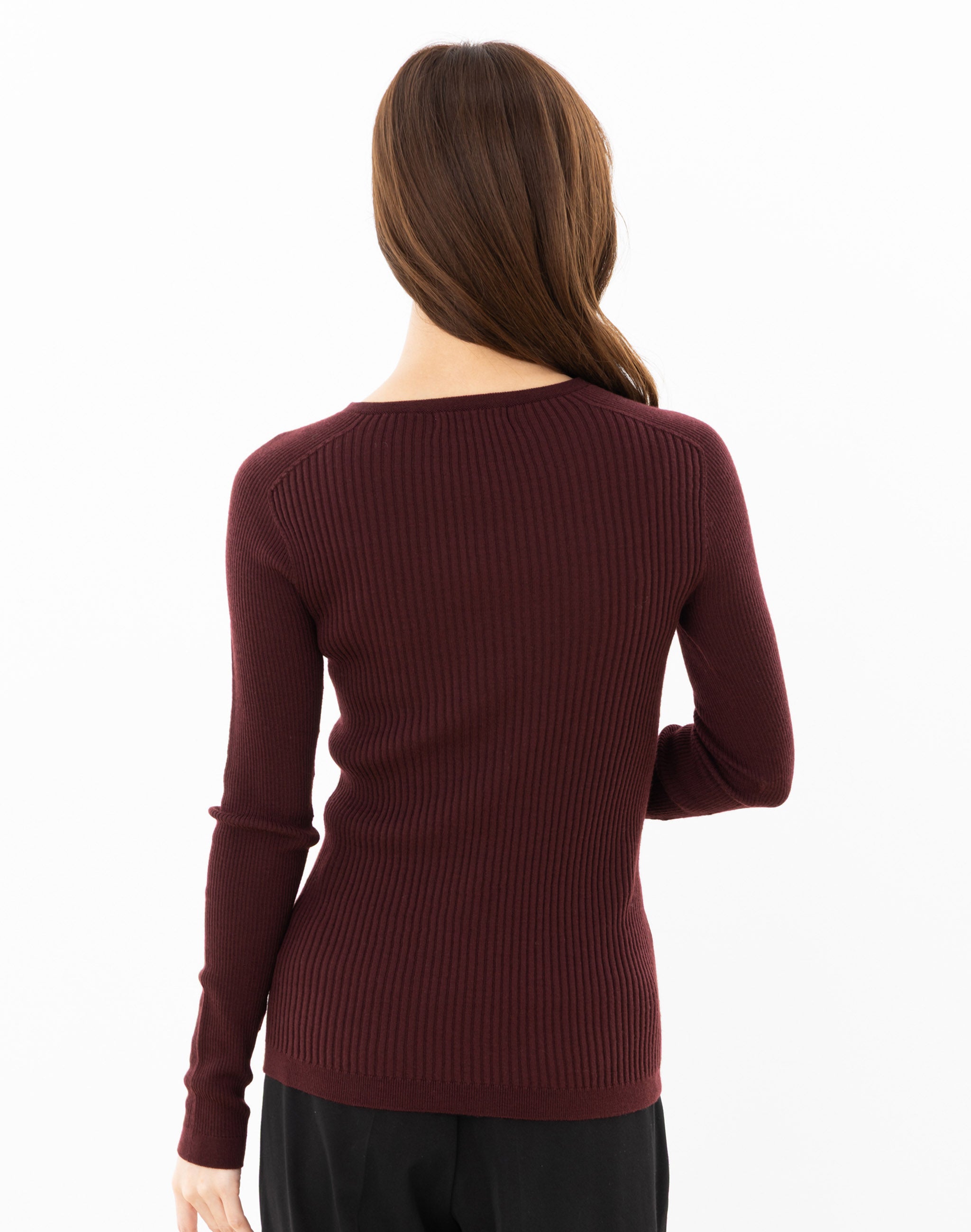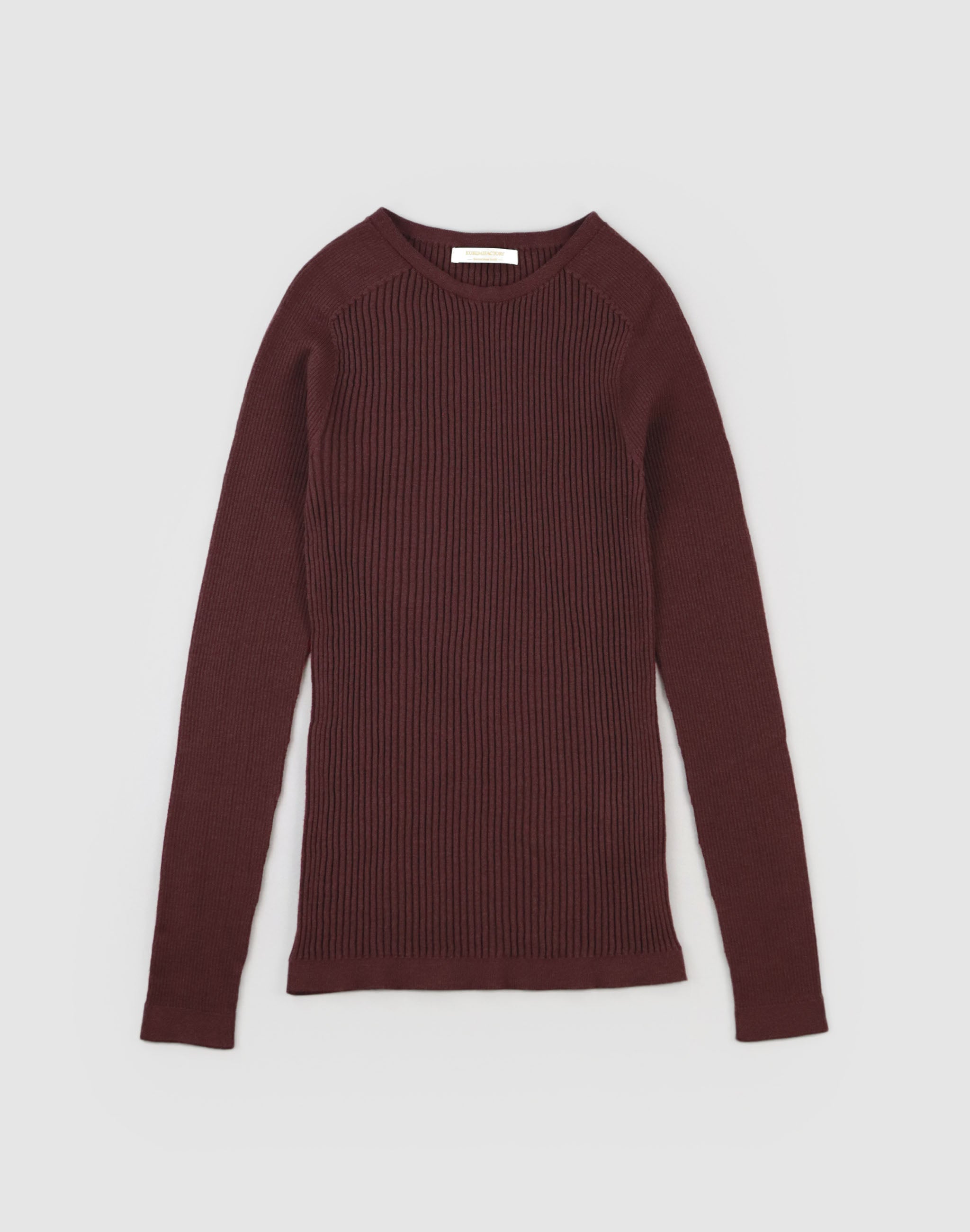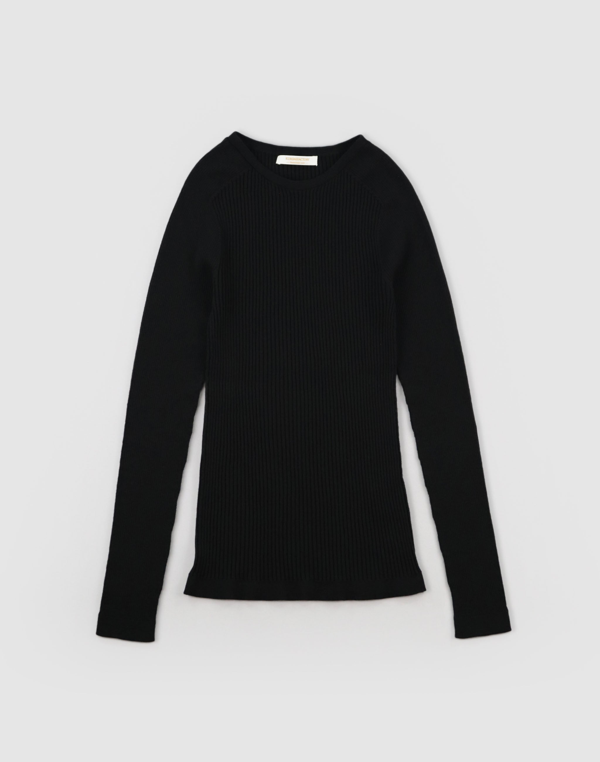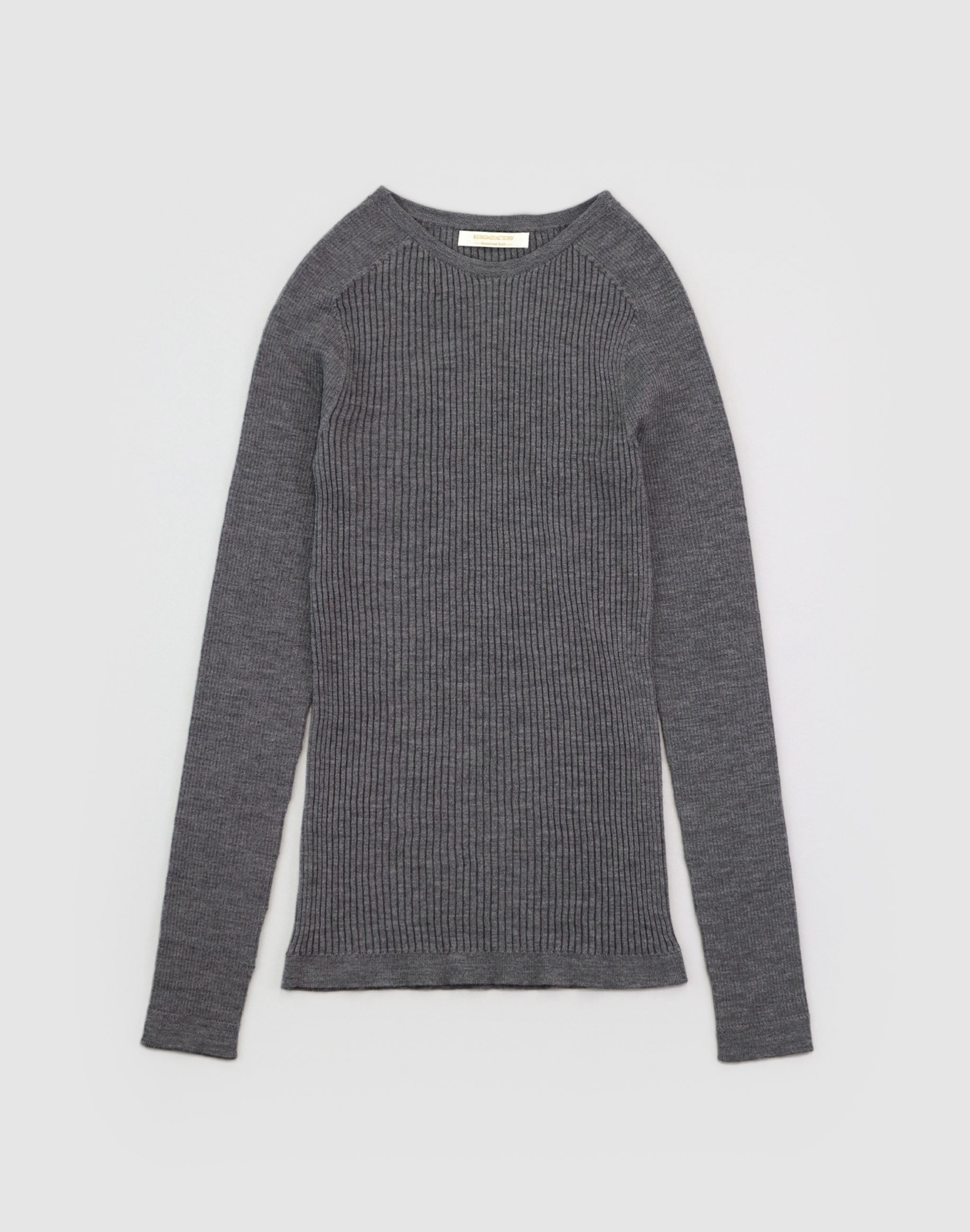 丸首型のベーシックなネックライン。カジュアルなスタイルにも、上品なスタイルにも、幅広いコーディネートを楽しむことができるアイテムです。