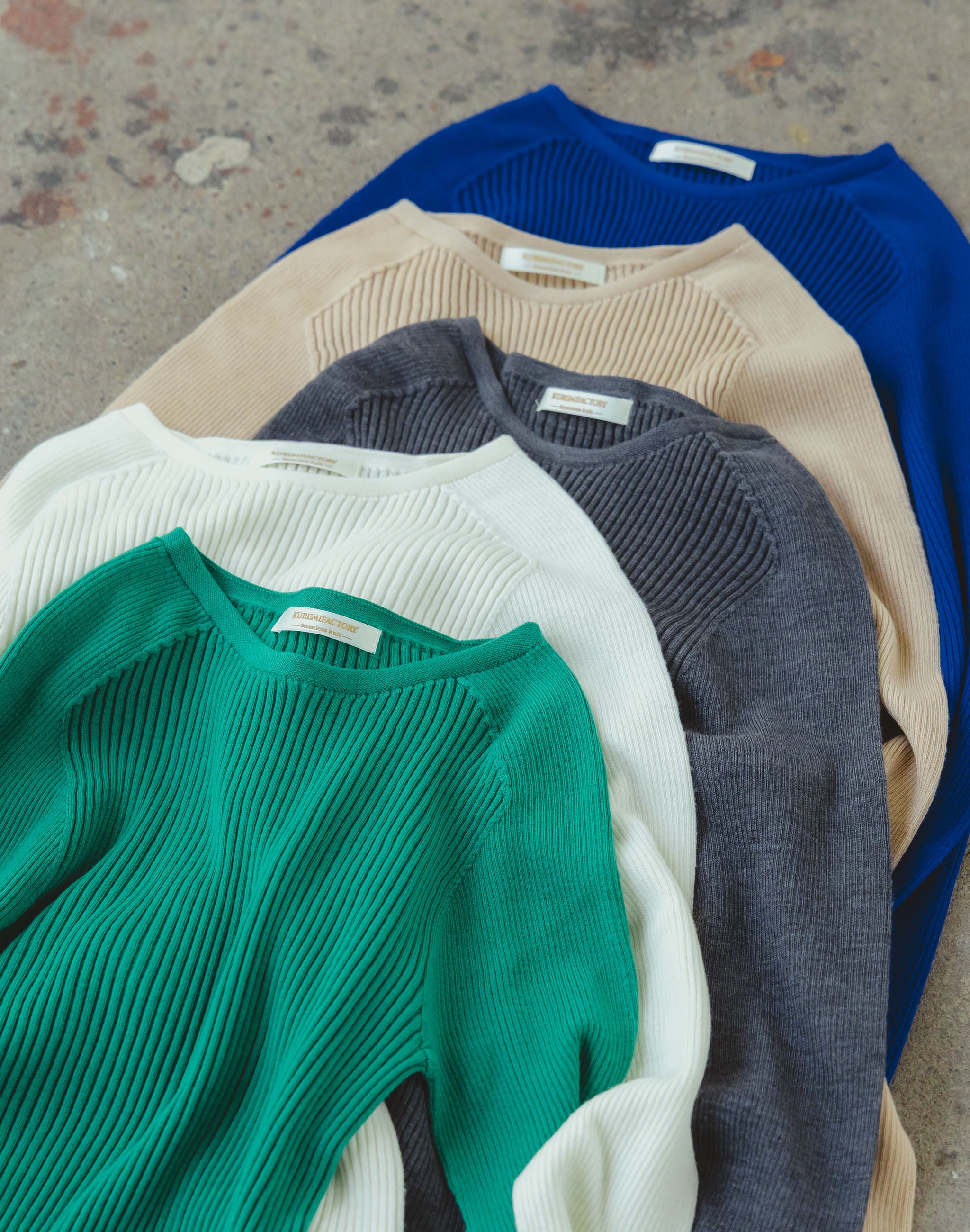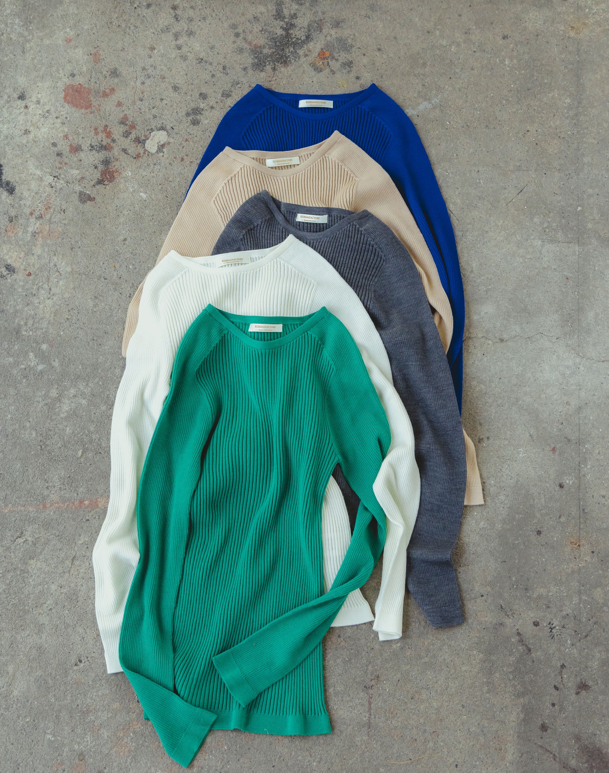縫いしろがないため肌にもやさしく、生地の切れ端が発生せず、廃棄ロスをなくす地球にもやさしいサステナブルなニットウェアです。