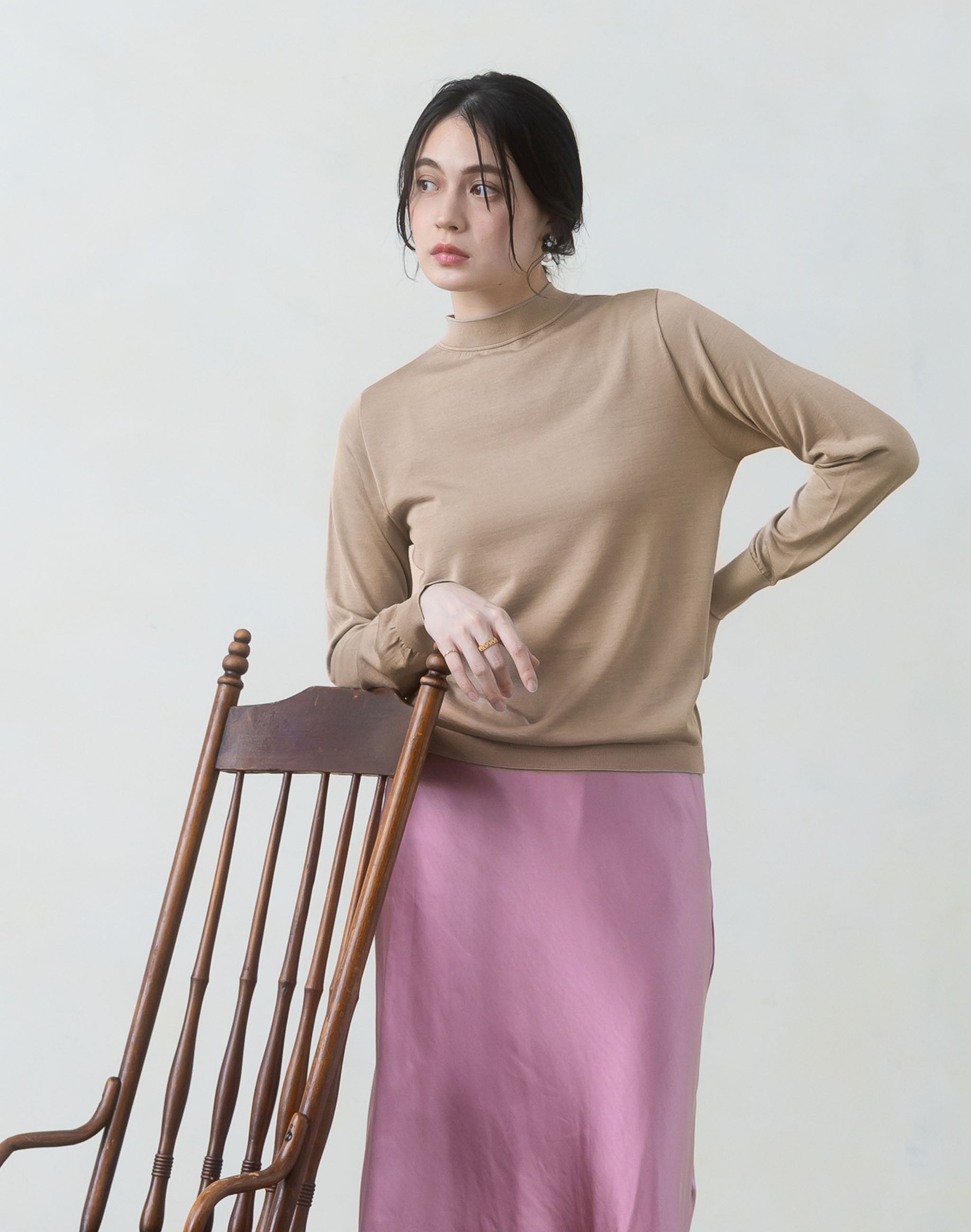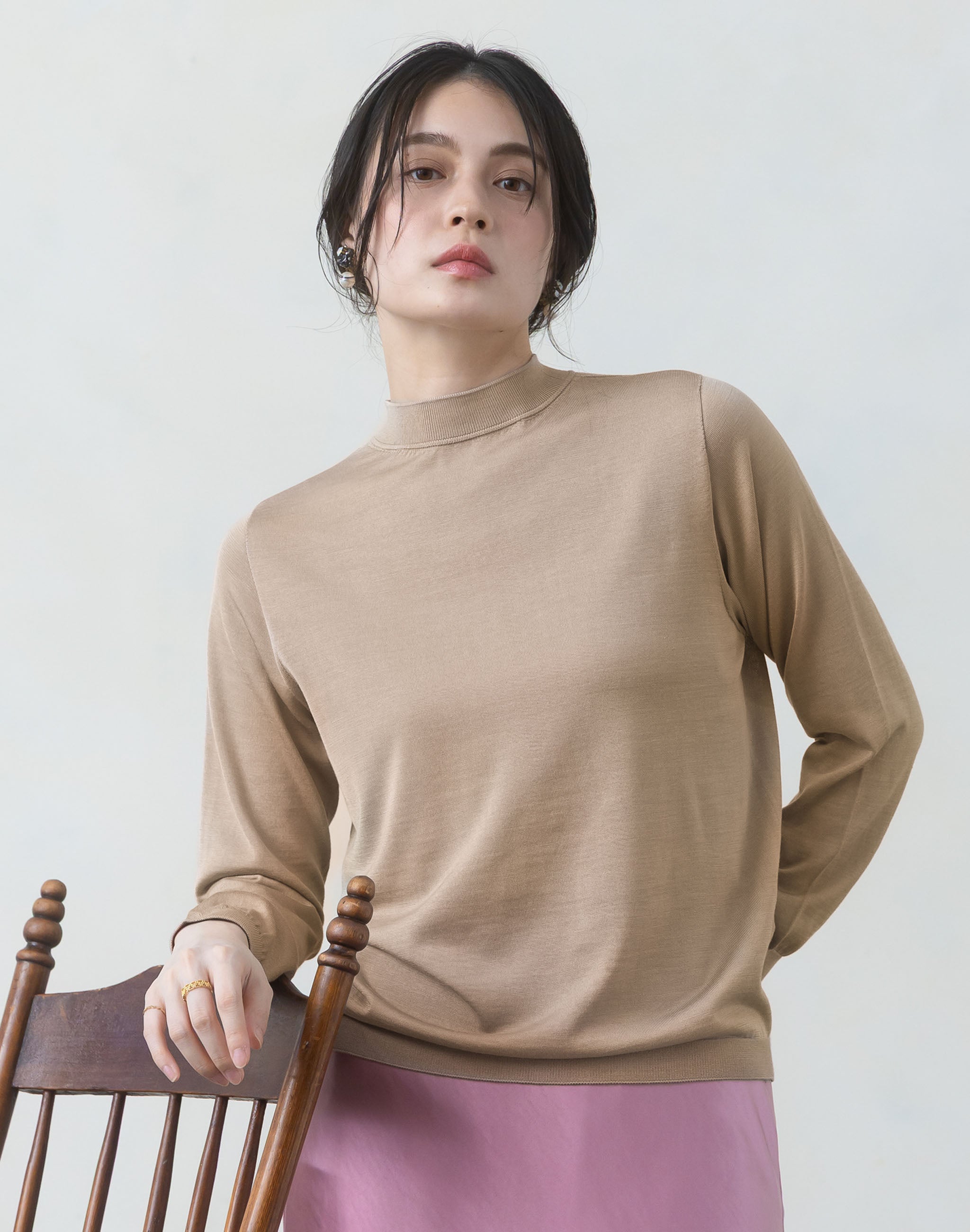 モックネックプルオーバー【洗えるシルク】