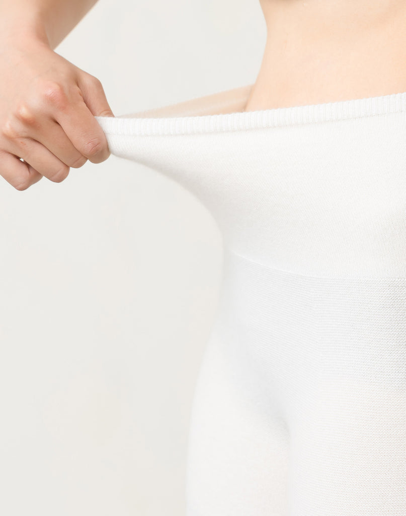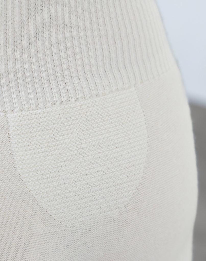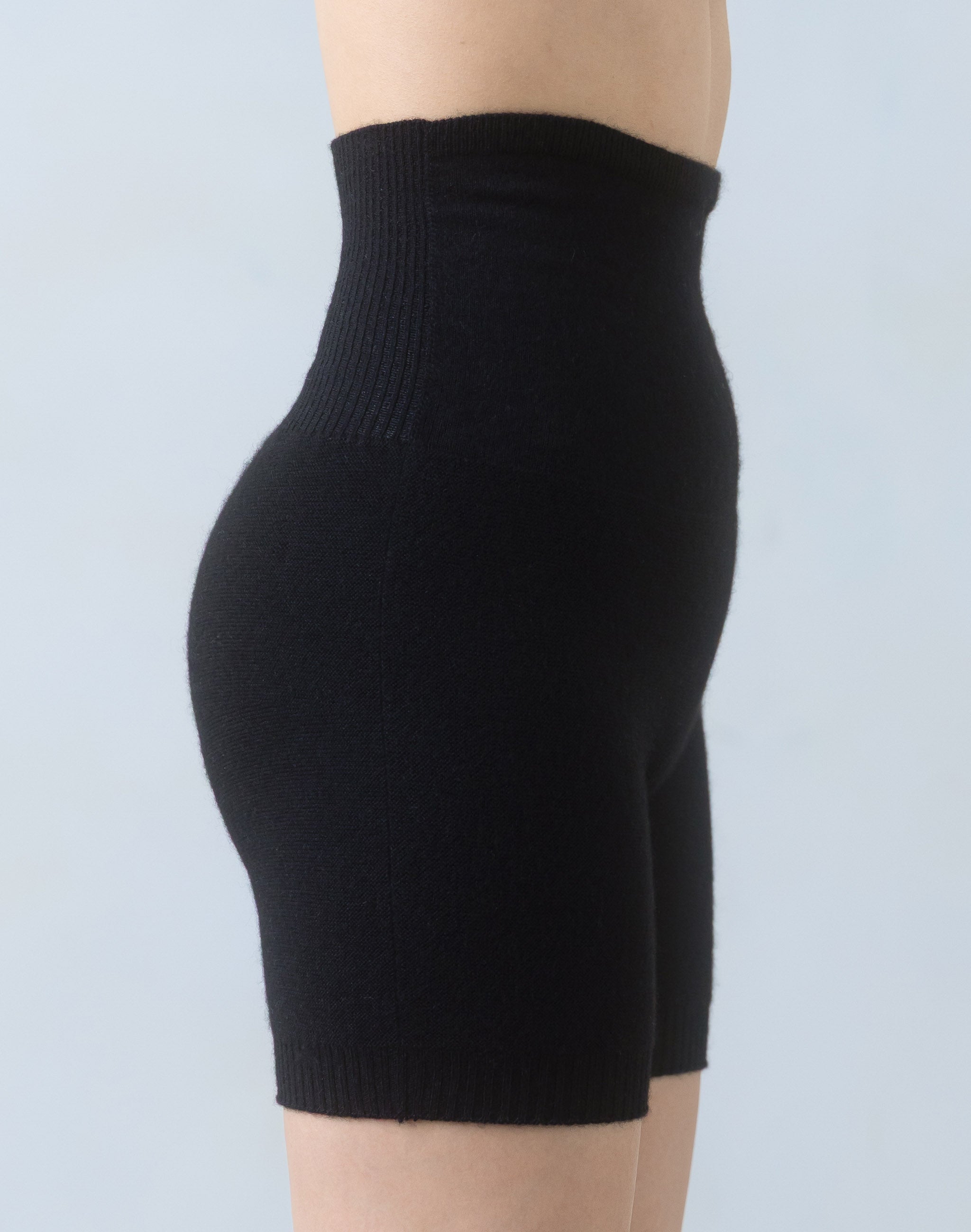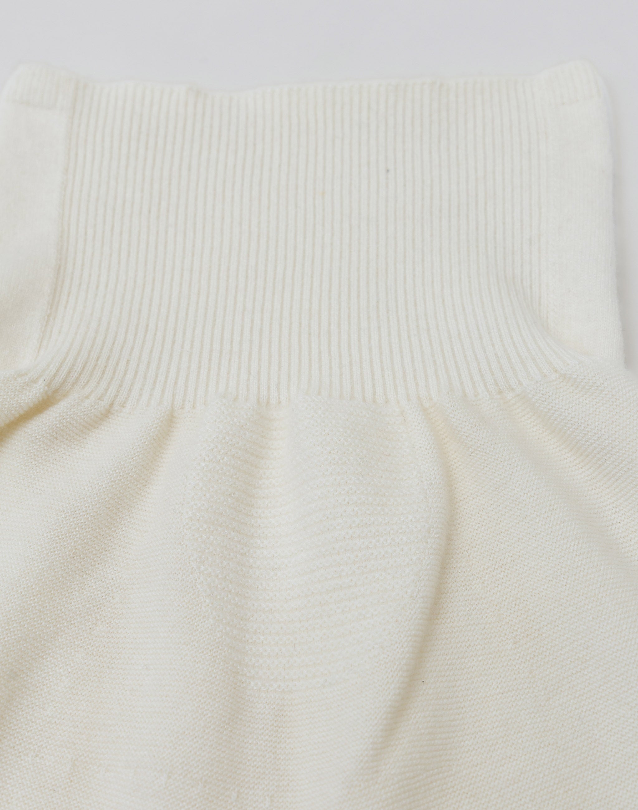 ハイウエストと上下端のリブ編みが熱の放出をきっちりとガードし、仙骨と股間部を特殊な編み目にすることで、大切な箇所の温め効果をUPしました。
