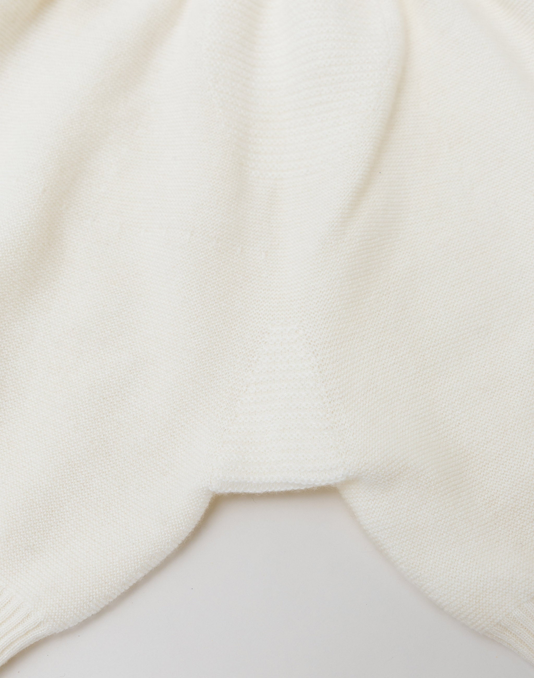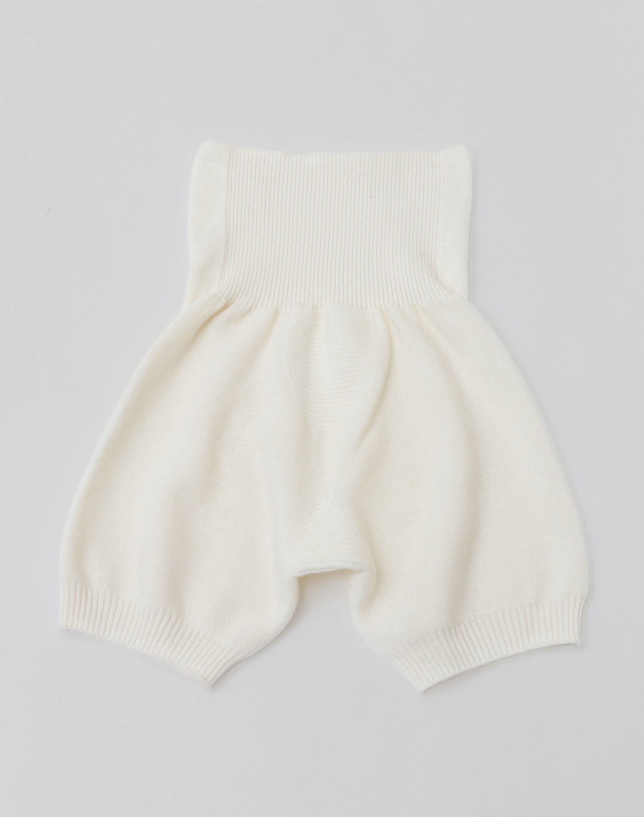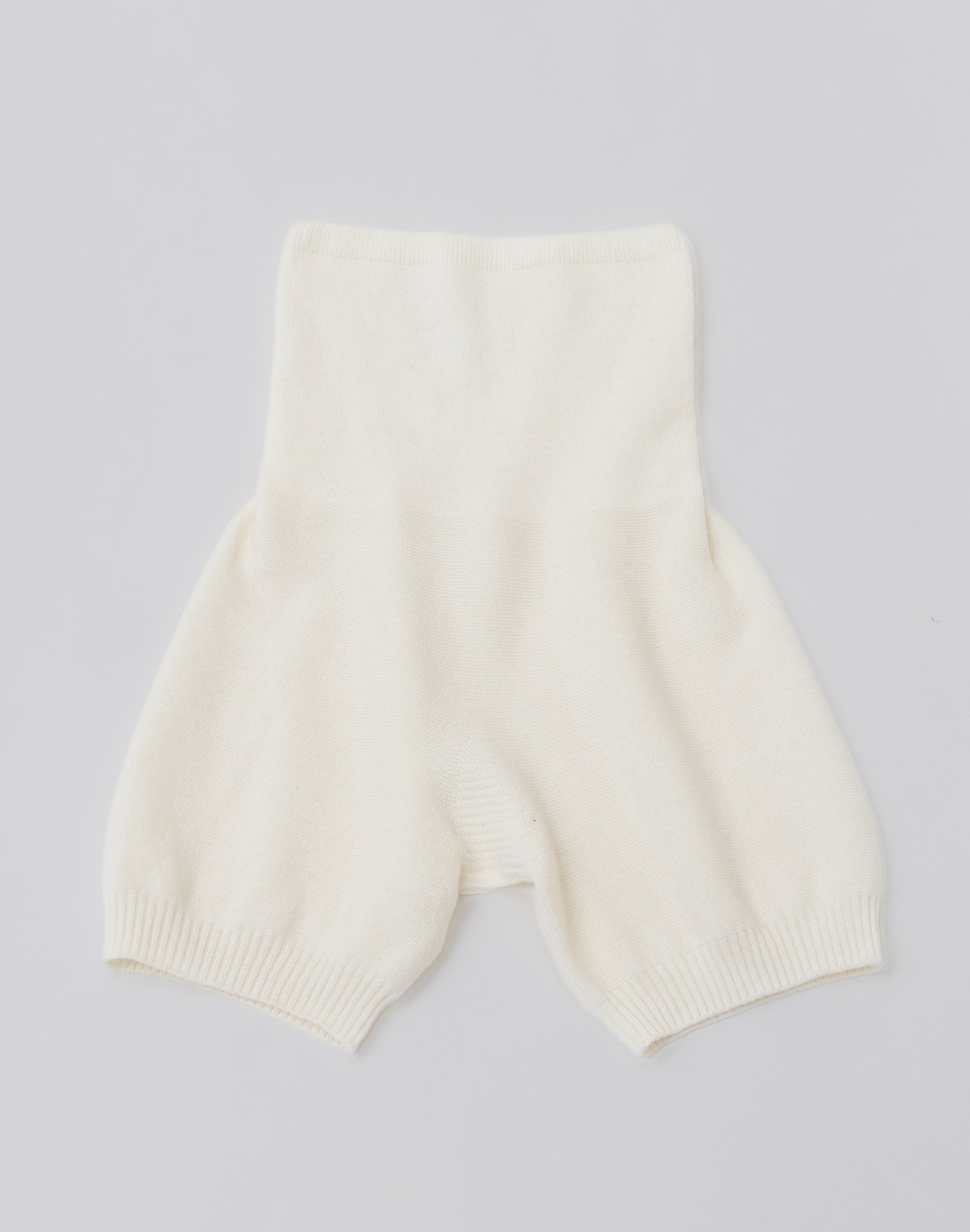 肌あたりを考え、前後で編み目を変えた「腹巻きウエスト」が、冷えやすいお腹まわりをしっかりやさしく温めます。