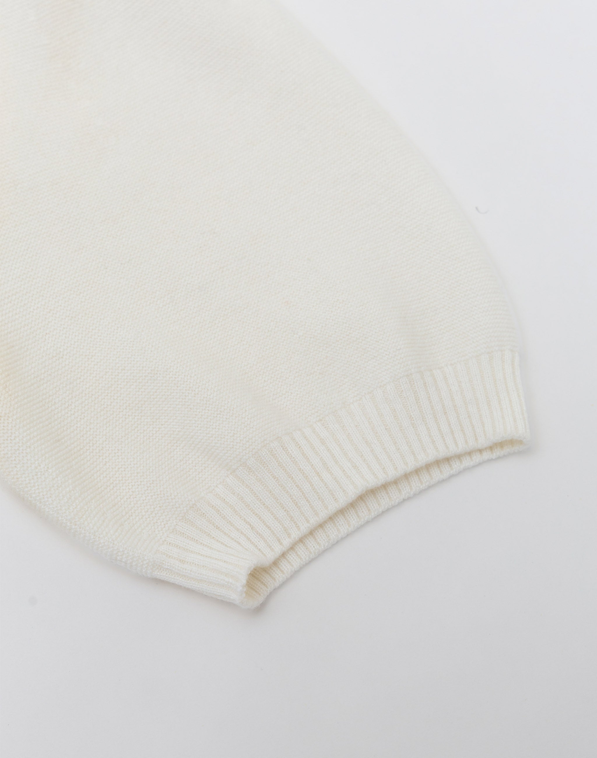 平面的なパーツを縫い合わせて生産される従来のニットウェアとは異なり、ニットウェアを丸ごと編み上げる、WHOLEGARMENT®(ホールガーメント)という無縫製技術で生産した製品です。