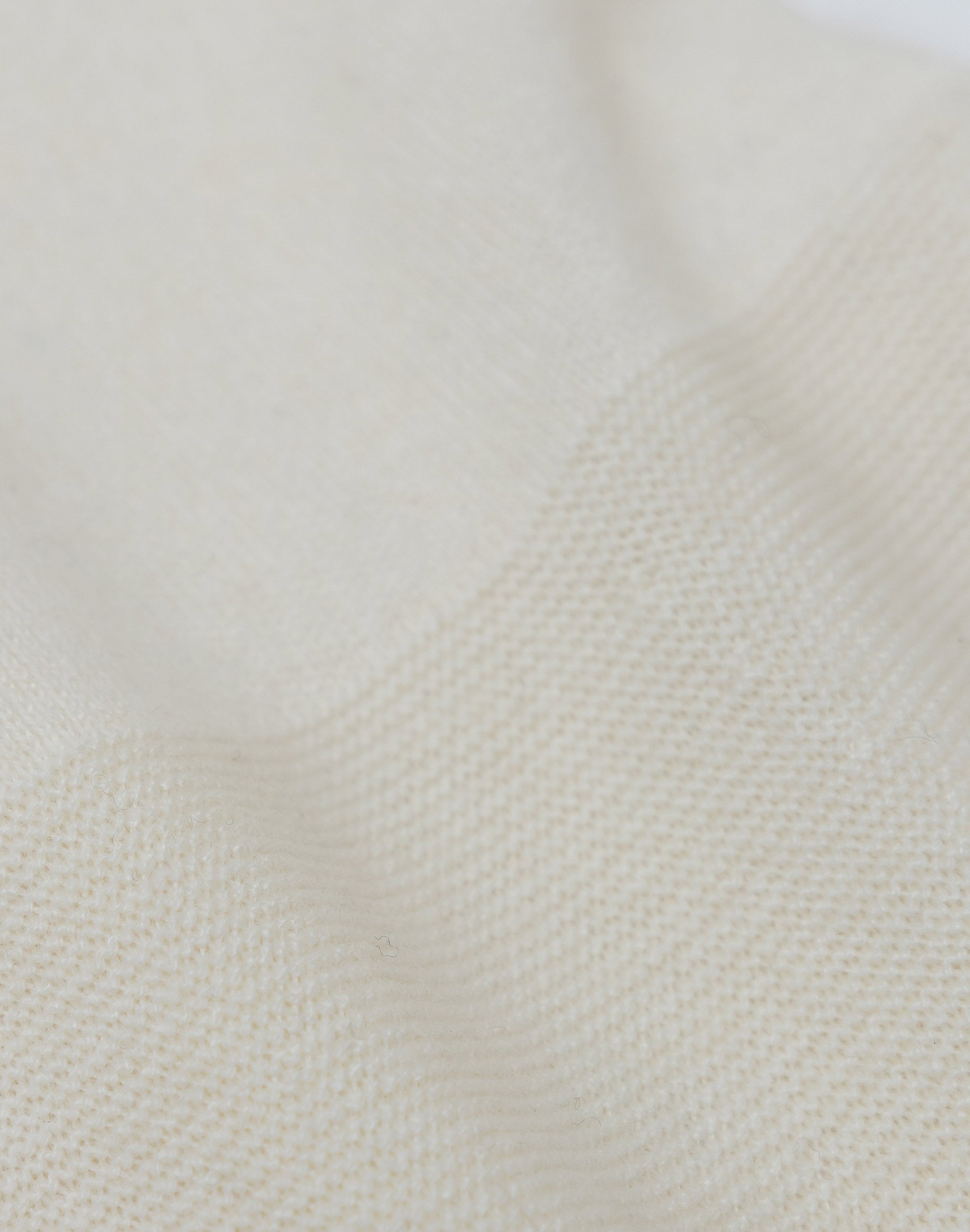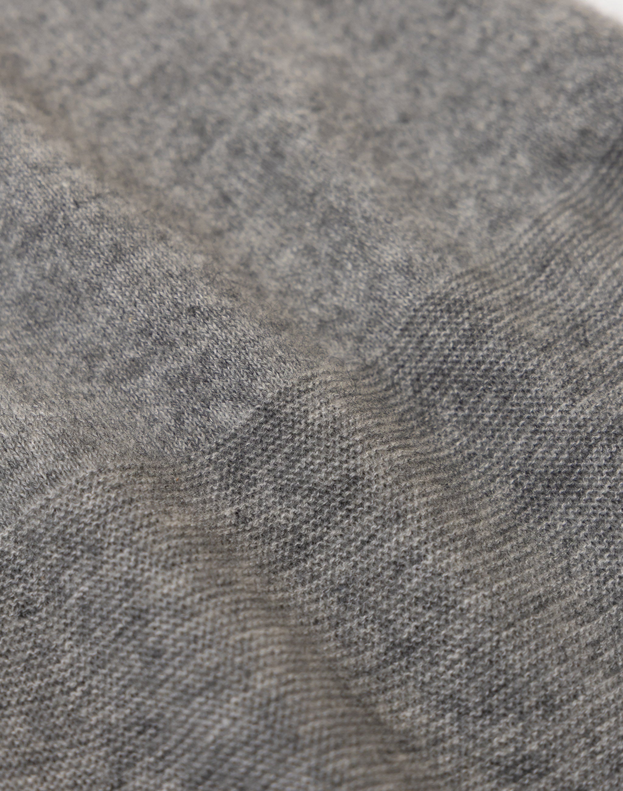 カシミヤの保温性とシルクの通気性・吸湿性を備えたこだわりの素材を使用。軽くて薄いのに暖かく、通気性が良いので暑すぎず、嫌な汗だまりもできない理想的な着心地を実現しました。