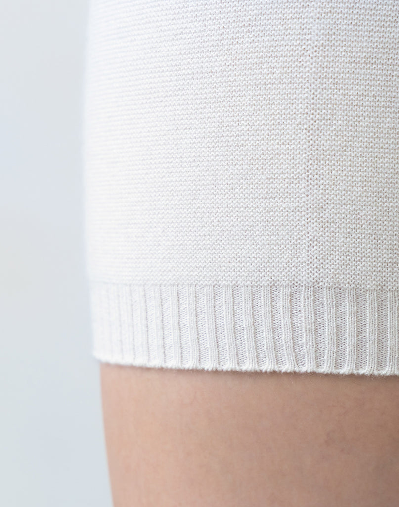 カシミヤの高い保温力とシルクの吸湿性を併せ持ち、薄い仕立てなのに、極上に温かい。 緩急自在な編地変化で立体的に仕上げるホールガーメント®で編まれているから、縫い目が無くアウターにも響きません。素材感を活かしたやわらかな編み目で、軽くしなやかにボディを包み込みます。