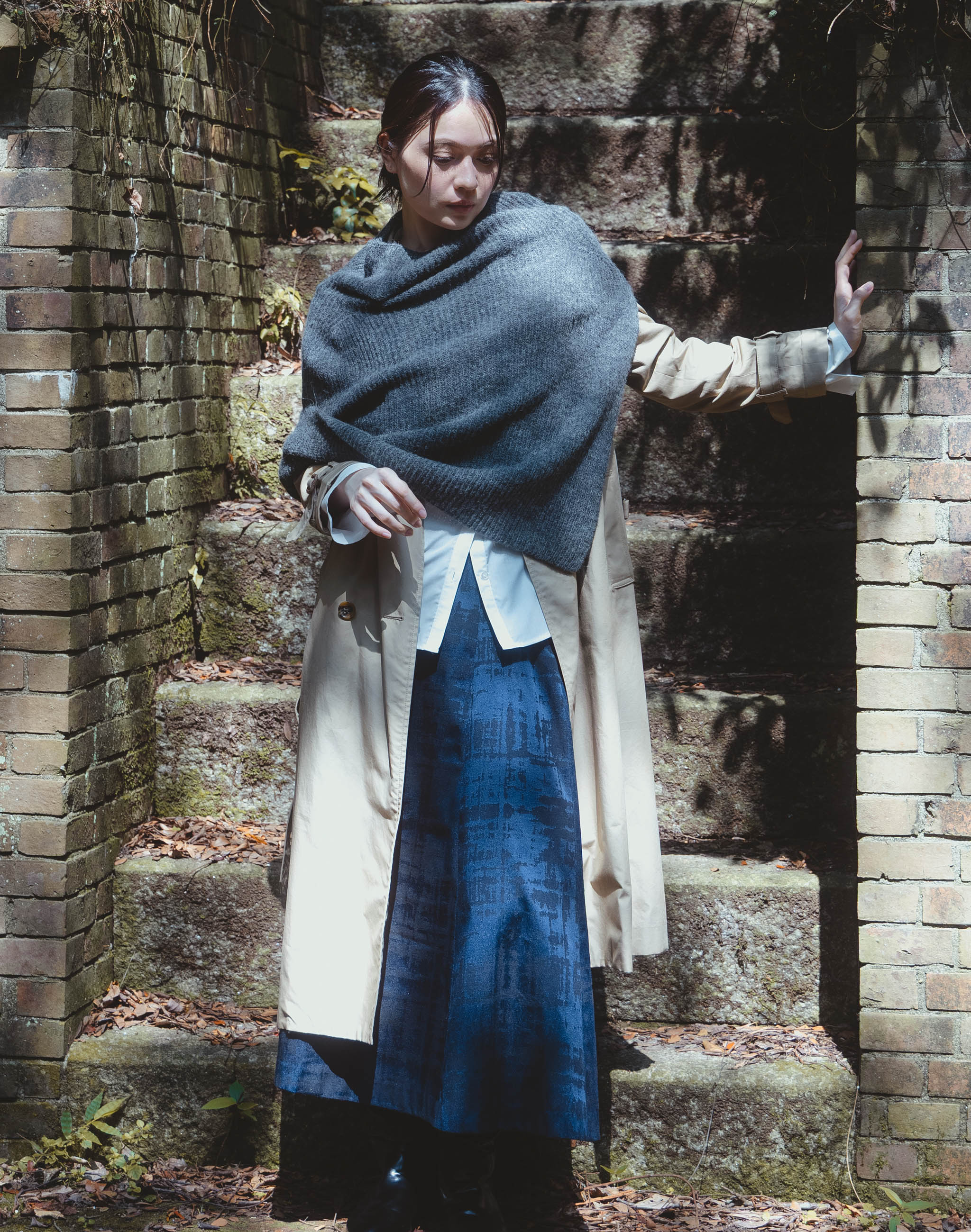 寒いときは肩までしっかり被るとふわっとした暖かさに包まれ、少し暑いかな?という時やコートに合わせたい時は首の周りに集中させてスヌードのようお使いただけます。
