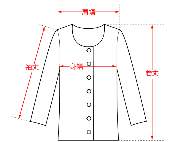 | 着丈 | 身幅 | 肩幅 | 袖丈 | |